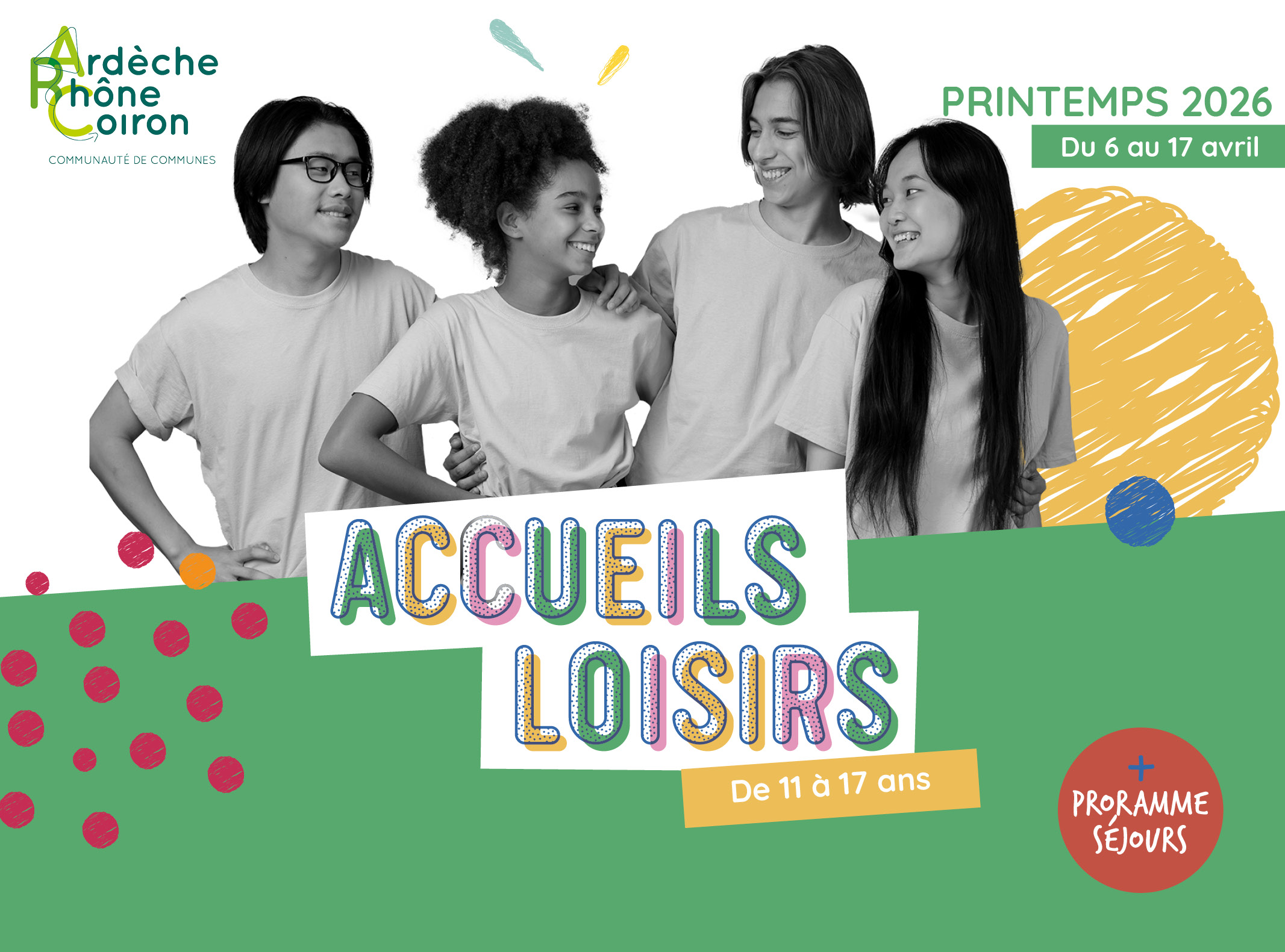 Du 7 au 17 avril 2026, les jeunes auront des activités rien que pour eux. Les vacances de printemps vont être de bons moments à partager.